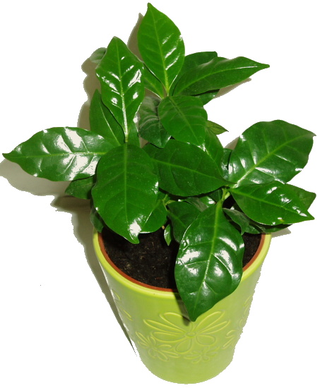 Sadzonki kawy, wysokość +- 15 - 25 cm, z doniczką, 3 sztuki.