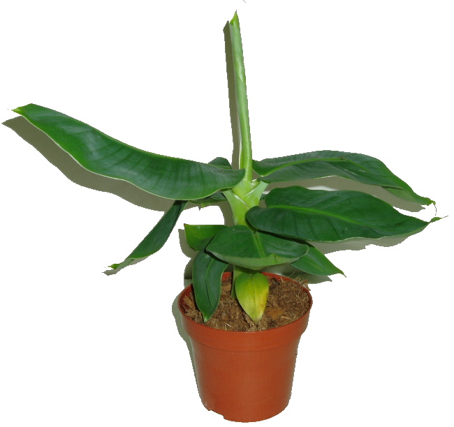 Drzewko bananowe Musa, wysokość +/- 35 cm z doniczką. Średnica doniczki 12 cm.