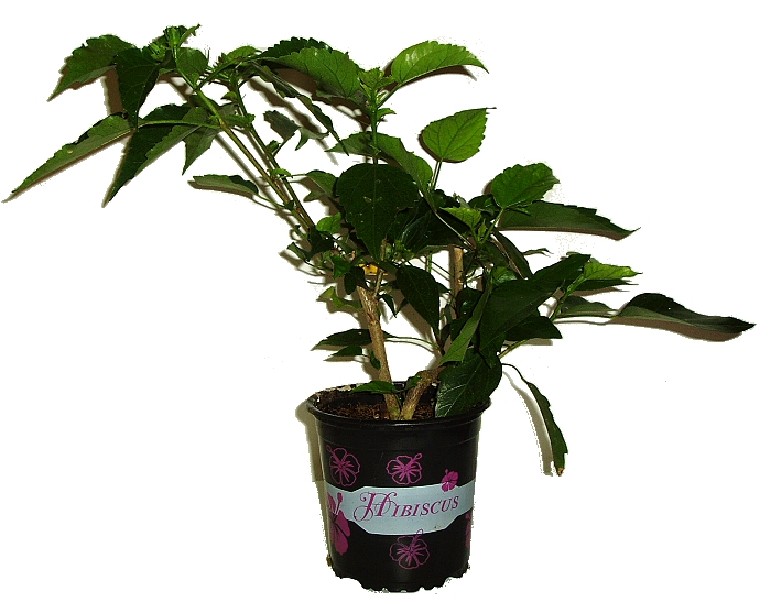 Hibiskus hibiskus. Średnica doniczki 13 cm. Wysokość rośliny ok. 30 cm łącznie z doniczką.