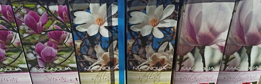 Sadzonka krzewu magnolii o białych kwiatach. Krzew szybko urośnie i zachwyci kwiatami. Wysokość wynosi obecnie około 30 cm wraz z doniczką. Średnica doniczki wynosi 9 cm.