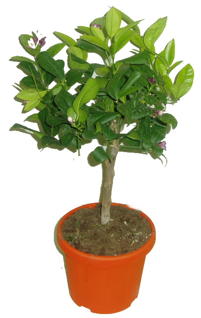Mandarynka cytrusowa Clementina - wysokość rośliny +/- 50 cm z doniczką, średnica doniczki 16 cm. Rodzi duże, słodkie owoce.